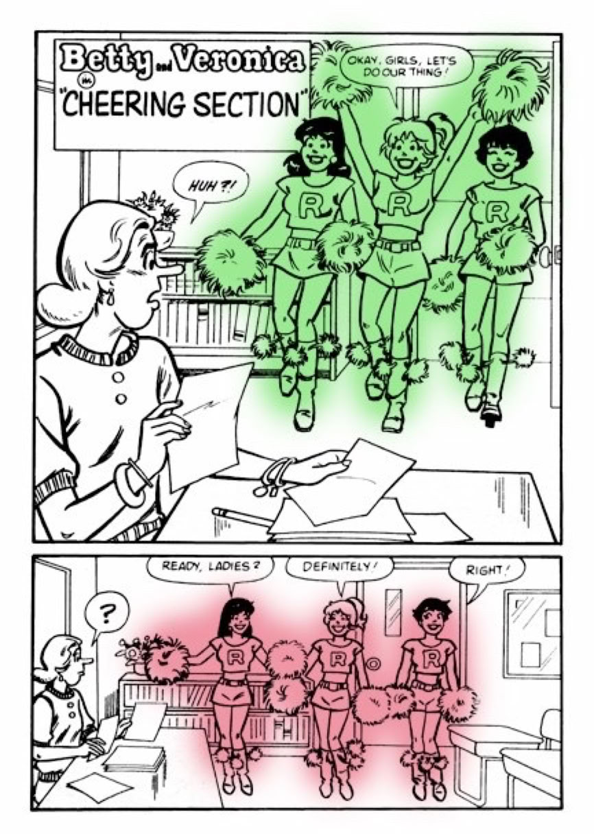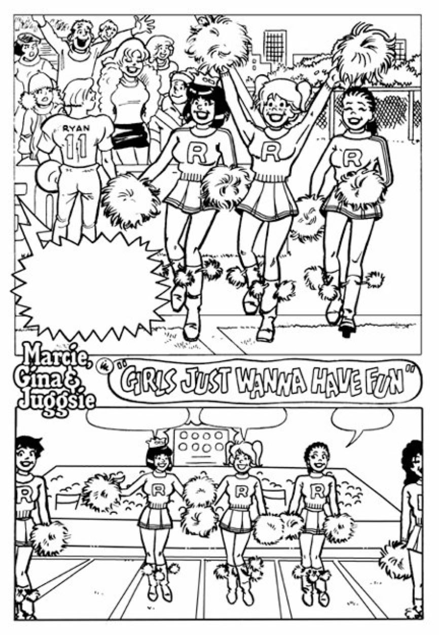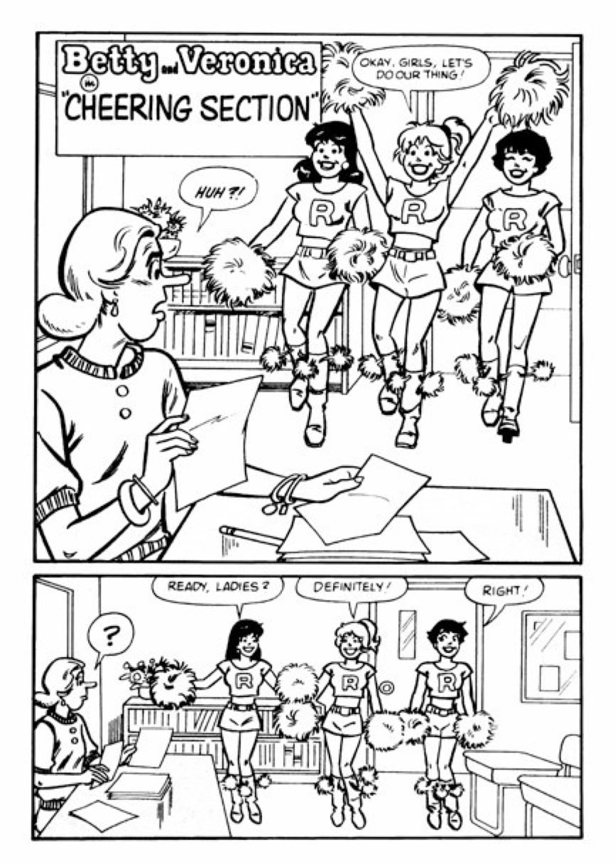 The page now does exactly what I want. It has our three girls being introduced as cheerleaders, and establishes them back in Riverdale at a football game.