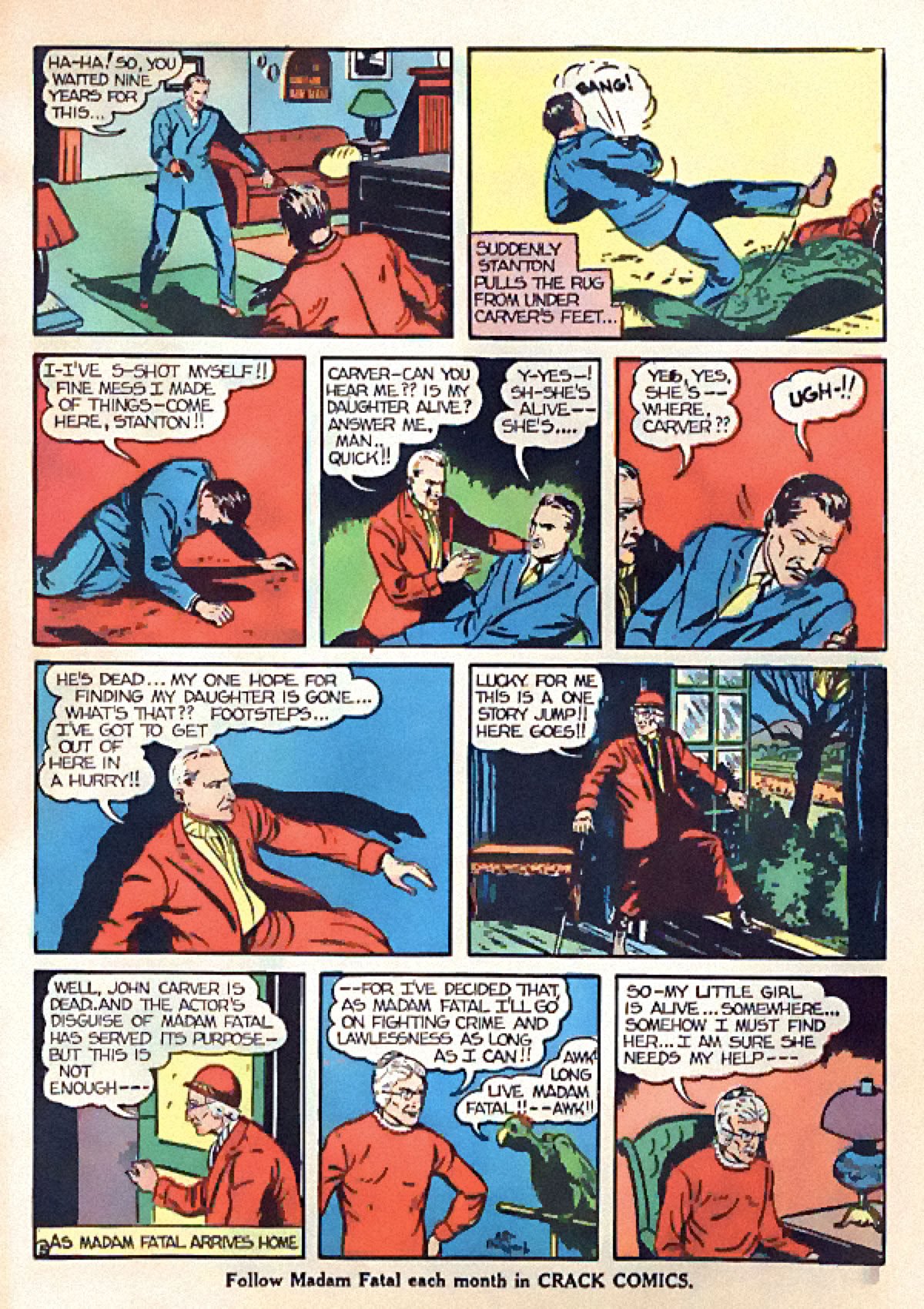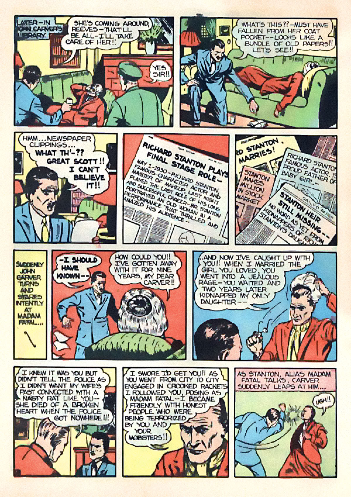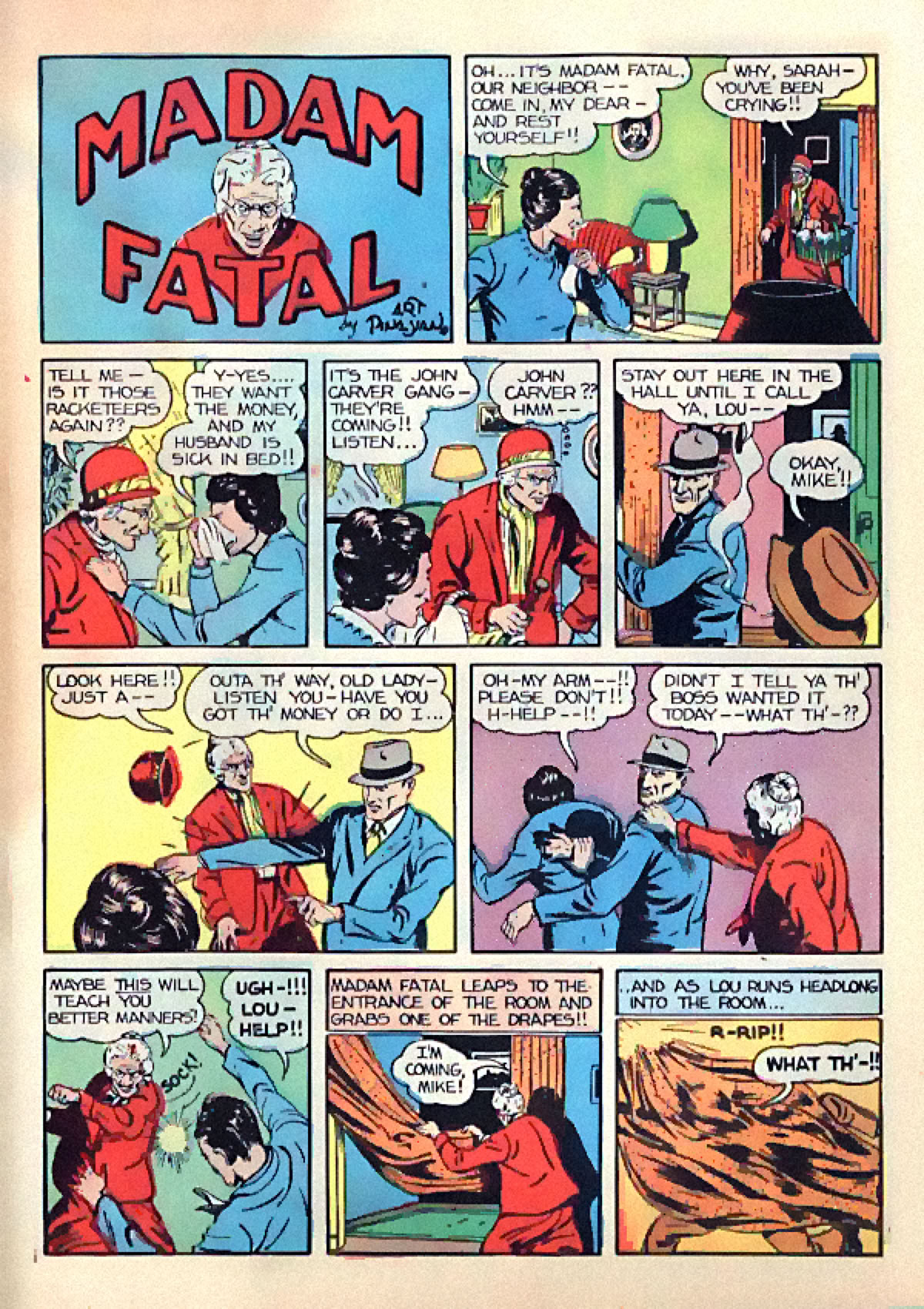 I don’t know why one would need to research this topic, but someone did. This is the first story of “Madam Fatal,” a short-lived proto-super-hero from the early days of comic books. You can read the original report here. Ms. Fatal takes the prestigious title of the first TG superhero.