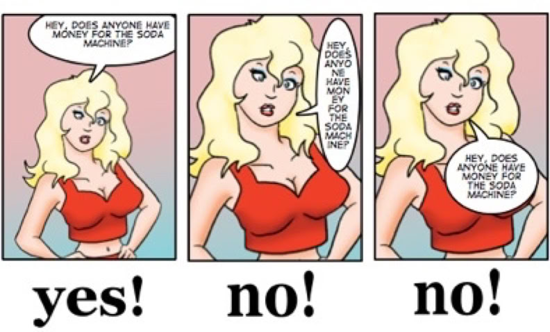 Another thing a comic artist needs to keep in mind is that you can’t stick dialogue bubbles in the middle of a drawing. If you draw your art first and then put the text in, you have to jam it in or place it right over your artwork and things look a little... unplanned.