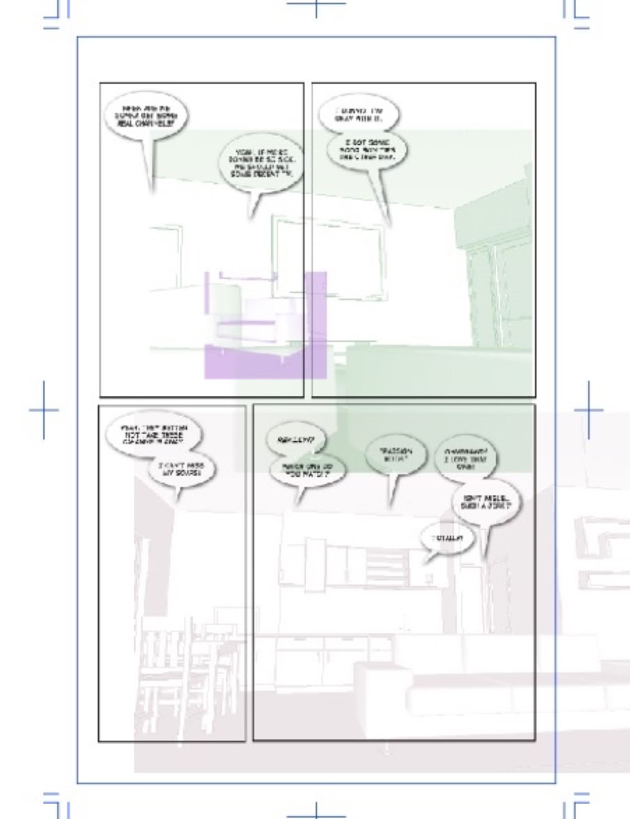 Fortunately, there’s a great little program called “Comic Life” that is fantastic at dialogue bubble construction. I was going to do all my artwork in a program called “Manga Studio” which is great for inking and sketching, but it’s text handling is not easy to understand and a bit clumsy... and it was built for Japanese. I needed something that I could work in free-form and move & edit text quickly. It also creates panels just as fast. Comic Life was the answer for me.