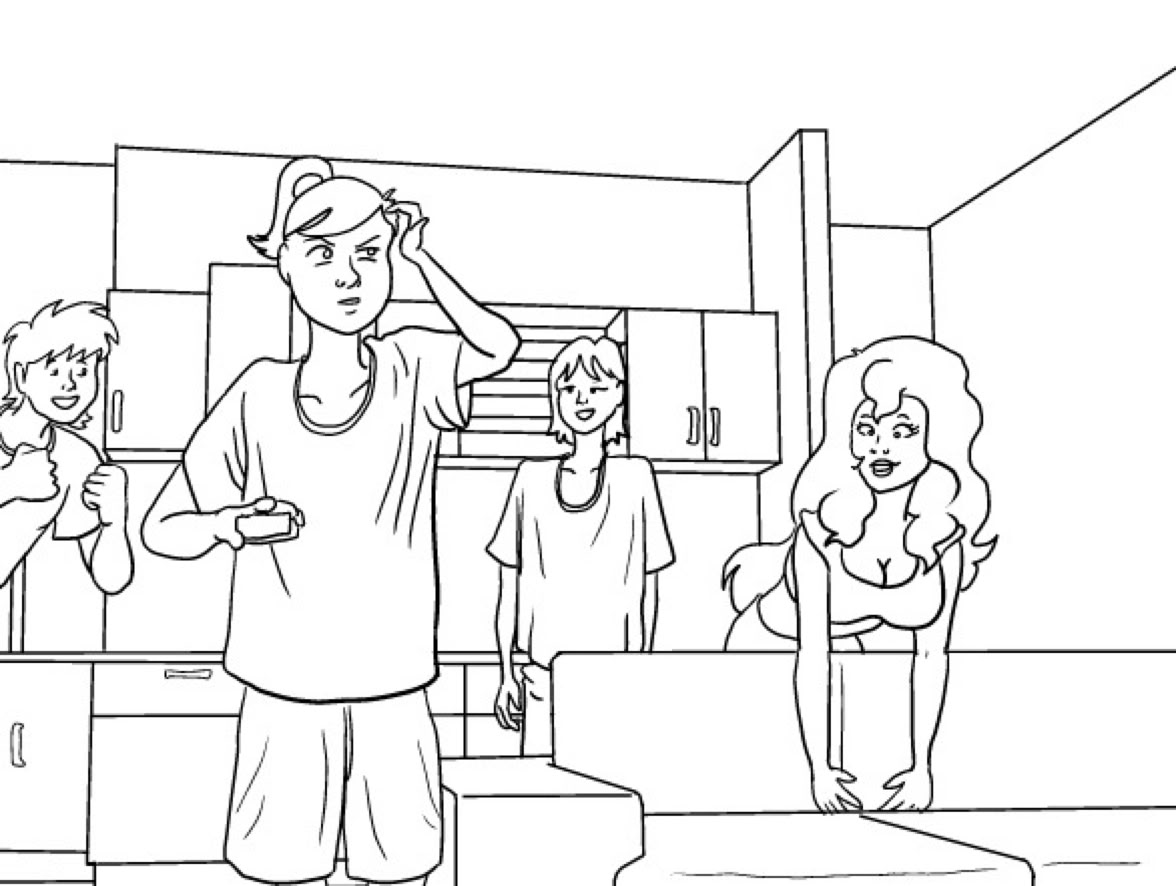 5.Nick emerges from his room, tired as hell, and wearing Felicia’s panties. The boys say they wish they had snuck in their girlfriends as well. Prepared food appears in the kitchen slot, and they start to talk about the situation: how the phones only call and text automatic robots, the radio only gets one Disney kids station, and the computers only surf to on-line game sites.