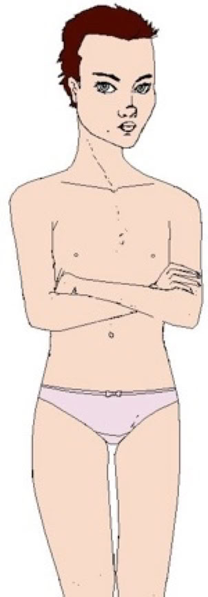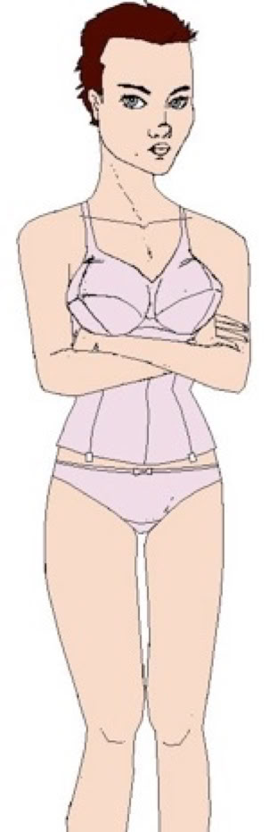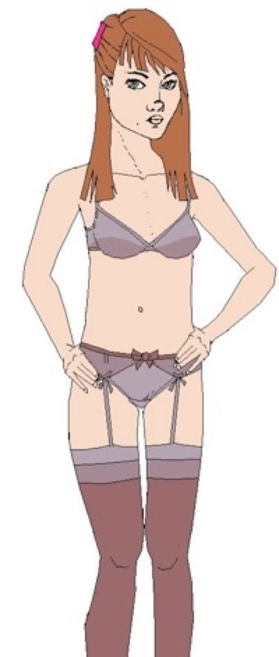 "They're D-Cups," said Stacey as she fastened him into the piece of lingerie. Charlie's waste shrinked by a few inches and his figure was most definitely feminine now. Charlie got up and looked into the mirror. He had a figure most women would die for. He though his new figure looked a lot like Stacey's. For a moment, he wondered if maybe Stacey was trying to make him into her new girlfriend, but he passed it off. She was just having fun. As Charlie was marveling at himself in the mirror, Stacey rushed into her room to get a few more items. She returned with a wig, and a makeup kit.