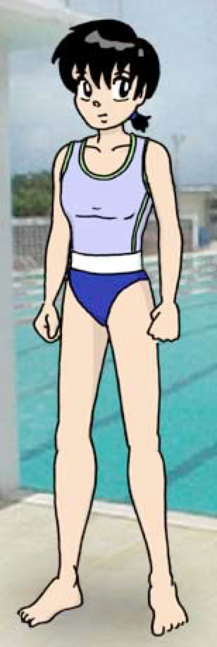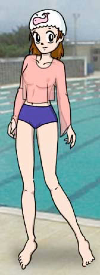 I was nervous about going because my swelling is still very bad and I am very thin. My old suit did not fit and at first I thought I could not go. Midori wanted me to wear her bikini bottoms, but I wanted boy bottoms. She said I was silly because there was nothing to see there anymore. But Midori had a suit I could use that was "boy cut" so it would be okay for me to wear. And I also wore a shirt that covered the chest so no one could see. Midori said I shouldn't worry about these silly things and just use her clothes. But I want to wear my clothes. She was also worried that the chemical in the water would hurt my hair so I wore a bathing cap to protect it.