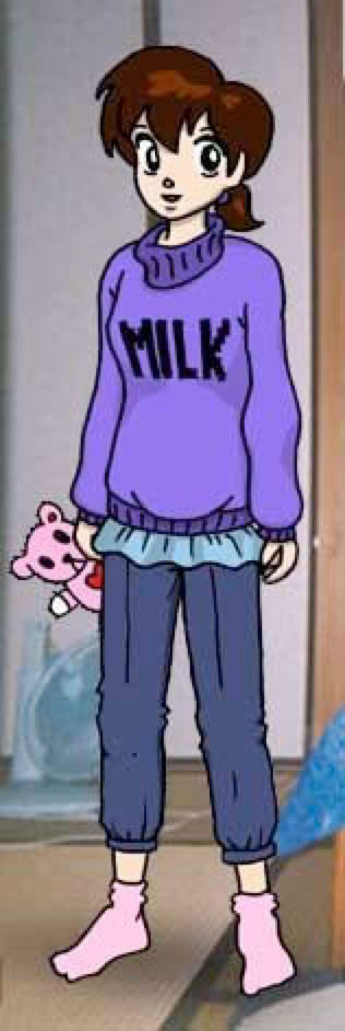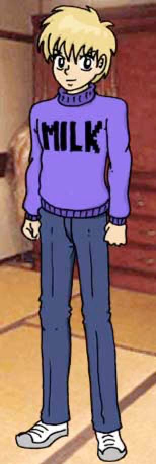 Oh, you've GOT to check me out in the latest picture. I'm still wearing Mr. Hosogawa's stuff (no word on my luggage yet), and he's got this one stupid sweater that just has the word "Milk" on it. That's it. No explanation. It just says milk. What an asshole! He actually bought this! There's a lot of stupid people wearing these dumb english language t-shirts with stuff like "100% Pure Lover" and "QP Not Dead" (?????) on them. They're either idiots or they have no idea how to read english. Anyway, it makes me look like a moron.