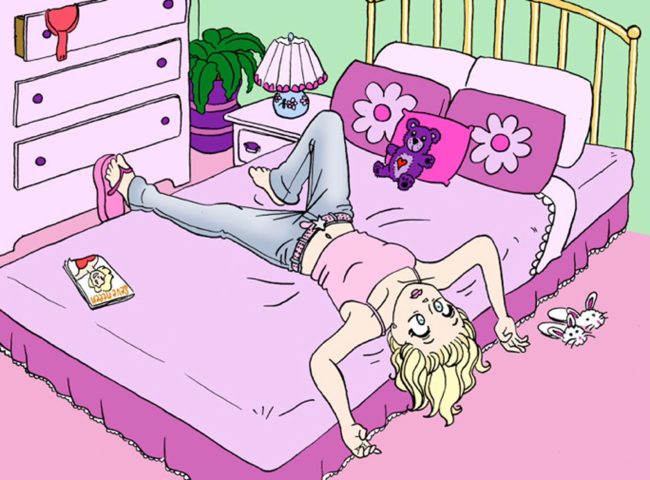 Mike dressed in his street clothes and wanted out of here. He put on his jeans, the ones with those adorable flowers stitched on the back where the pockets should be, adjusted his breasts in his bra, unbound his hair, and pulled on his pink spaghetti-strap T-shirt ready to go. After touching up in the mirror, he was off in a huff.