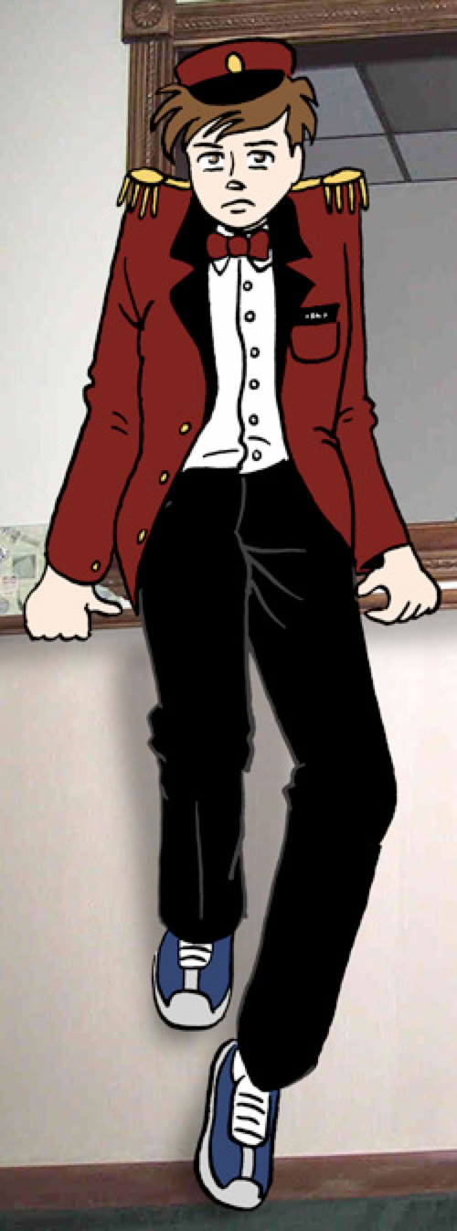 He was directed to a small changing room where he was to fit into his uniform. It was a standard issue movie uniform, maroon with gold trim and a fringe on the shoulders. He wore a black bow tie, a white dress shirt, and black pants. The outfit was topped with a maroon and gold usher's cap. He felt like a fool.