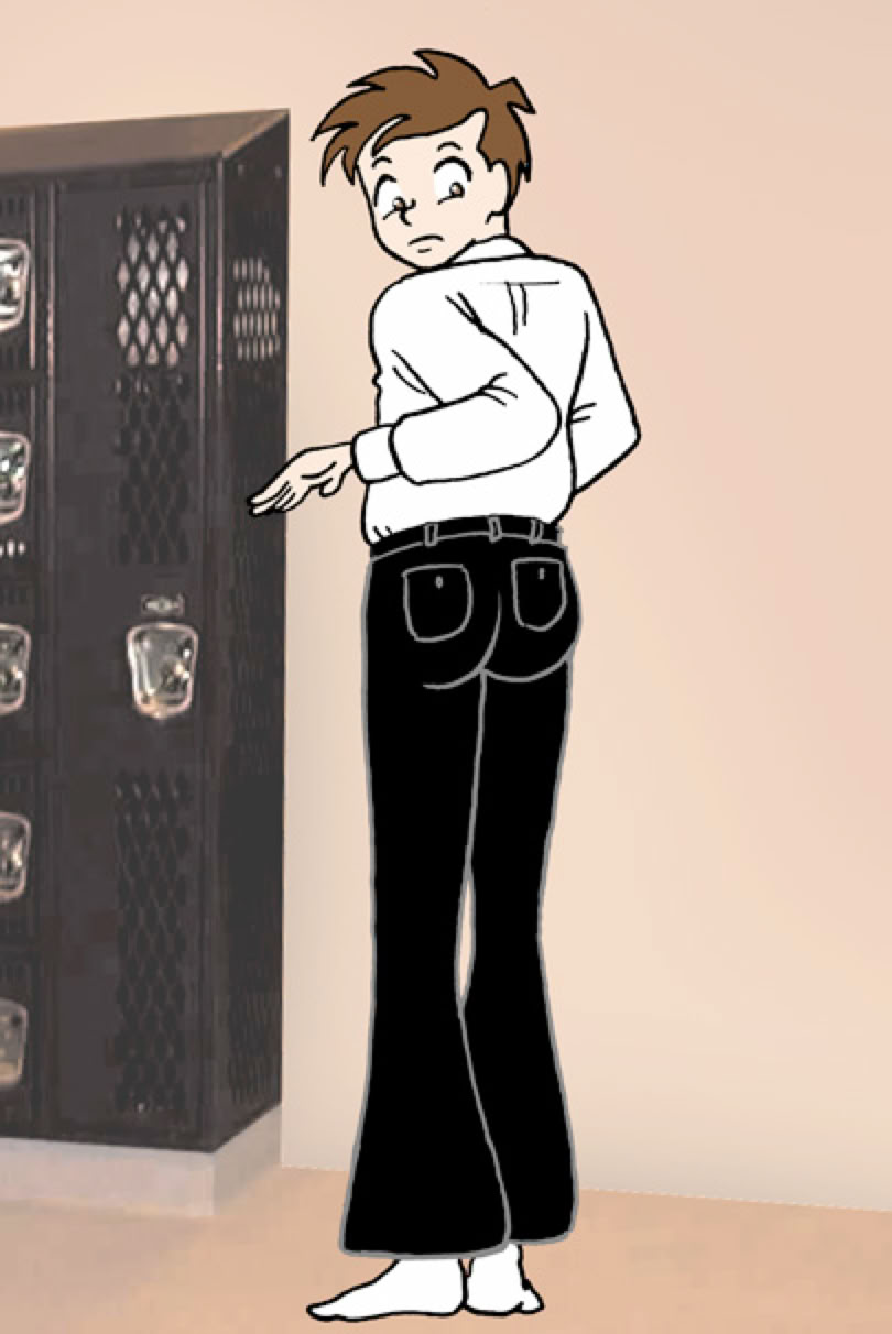 His pants were no help as they were getting even tighter. His classic Levi's 501's now read "519" on the label. "Low Flare" it also read. He'd never buy those, would he? They were incredibly tight all the way down to his shins where they flared out to cover his shoes.