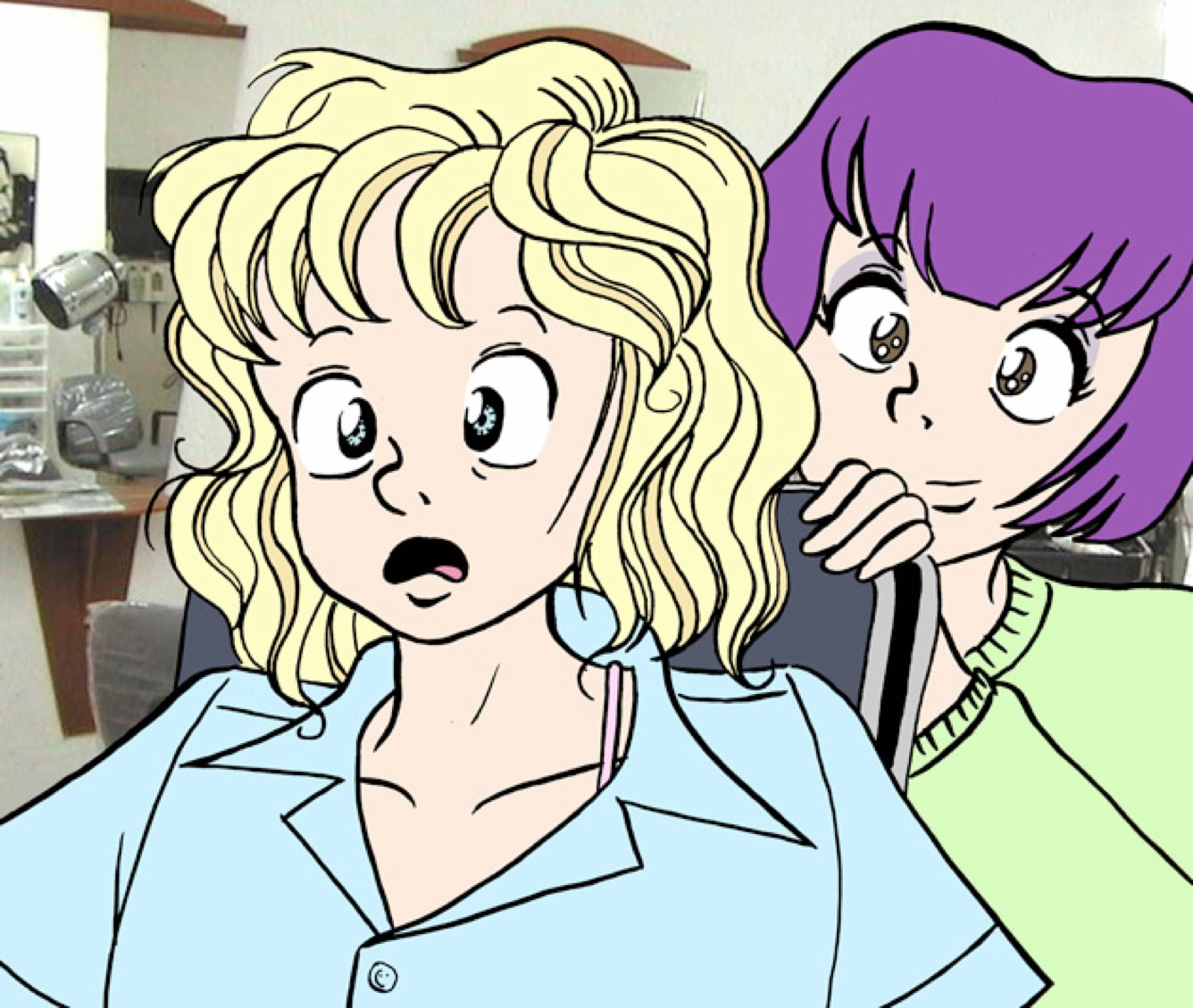 "Funny thing. I was watching this movie downtown at the old Multiplex, and there was this girl on screen who just had this incredible 'do. I've been waiting for exactly the right person to try it out on." She stopped to think for a moment. "It's weird. I once told myself I'd never copy the movies for my inspiration. But this time... It just lodged in my brain. I can't explain it!"