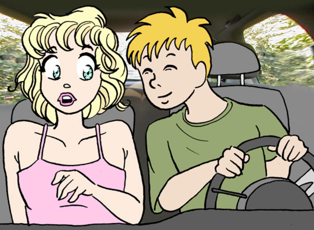 Brandon leaned over to smell Mike's hair closer. "Mmmmm. I love that." He said. He then swerved sharply to avoid an oncoming bridge abutment, and returned his attention to the road. Mostly.